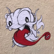 Ce bestiaire fantastique (entre peinture et illustration) peuplé de dragons, de poulpes, de poissons, de têtes de mort et de diverses autres créatures, comme des messagers enfantins, parfois insolents ou provocateurs, mais toujours attachant, vient rythmer avec humour et simplicité les façades des bâtiments .